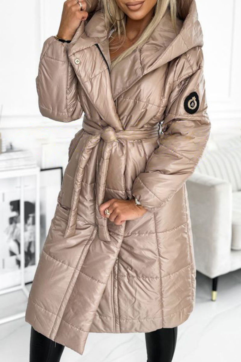 Chaqueta acolchada con capucha y cordón de diseño informal Cocoa Elegance