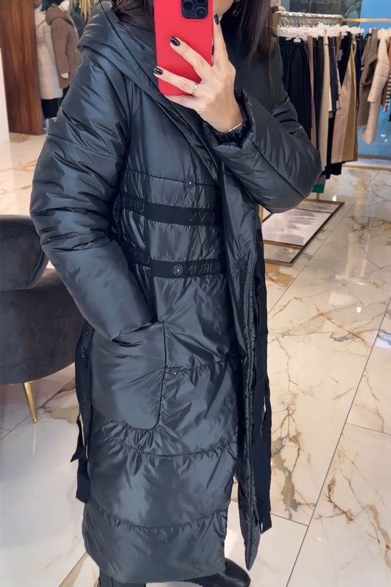 Manténgase abrigado y con estilo con el Abrigo largo de plumón de pato con estilo urbano y eleganteDiseñado para brindar máxima calidez y una silueta elegante durante los meses de invierno. Este abrigo es ideal para quienes buscan ropa de invierno de alto rendimiento sin comprometer el estilo. Su diseño alargado y su tono negro intenso lo convierten en una incorporación versátil a cualquier guardarropa.